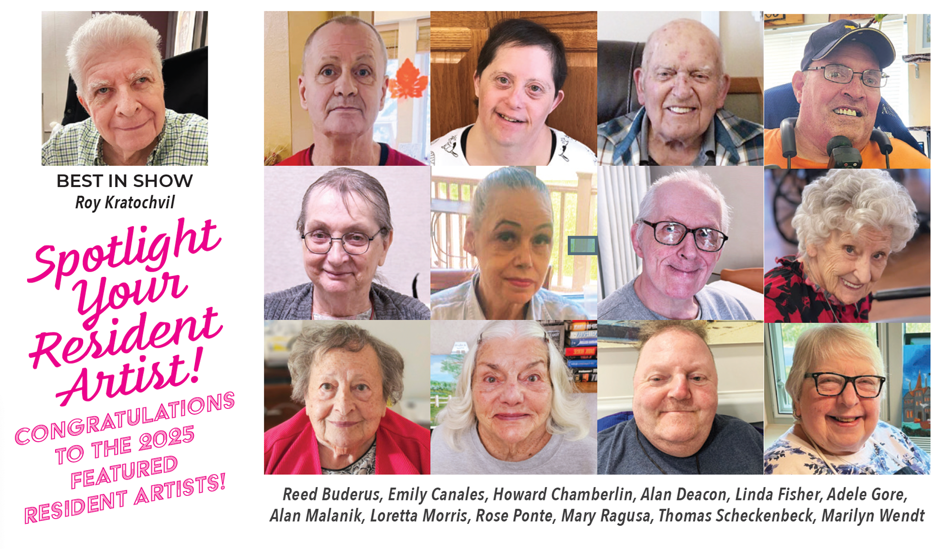 NEW THIS YEAR! This year’s Art from the Heart program is all about celebrating creativity through connection! We’re excited to produce a beautiful set of special occasion note cards featuring winning resident artwork on the cover. Each card will be blank inside—perfect for adding your own heartfelt message. Whether it’s a birthday, anniversary, thank you, get well, or holiday wish, these cards are ideal for any meaningful occasion.